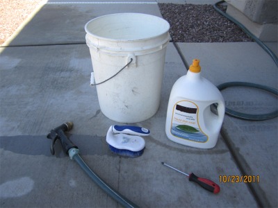 Equipment needed: All I need to clean my screens is a bucket, a nylon brush, a garden hose, a Phillips or slotted screwdriver and dish soap. I have found dish soap (NOT dishwasher detergent!) works best to remove the dirt and buildup without leaving streaks.